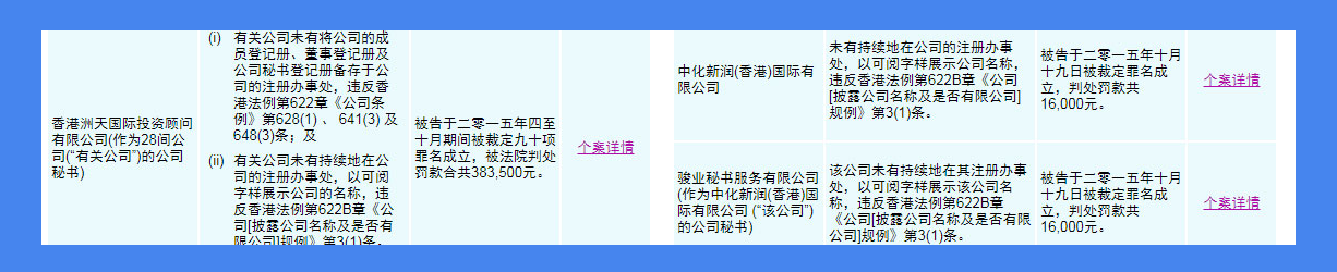 因近期部分香港公司收到注冊署檢查,未曾在注冊地掛水牌的信件,并需要在規(guī)定時間內(nèi)掛上水牌,如不及時掛水牌有可能會收到法院傳票及罰款! (附圖為:香港公司注冊處>檢控個案概要)
